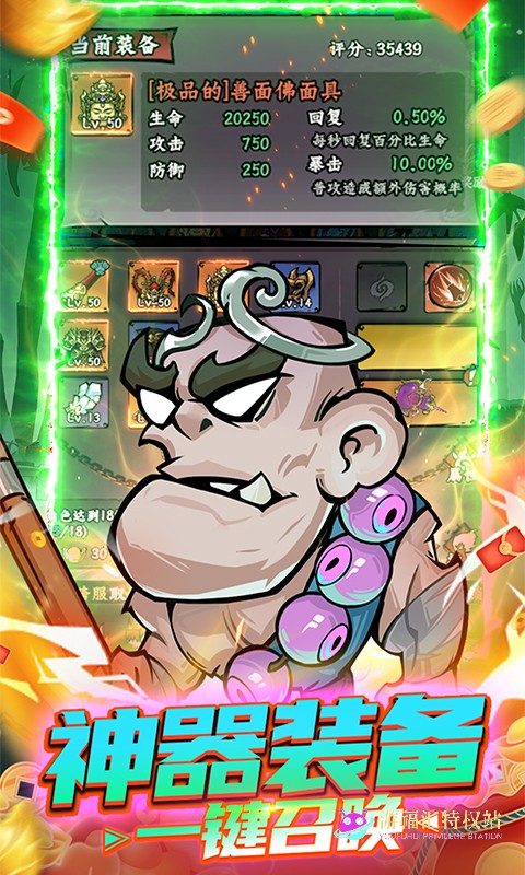 本游戏是一款玩法简单的放置类RPG游戏,基于西游记构建了一个虚拟世界,玩家可以扮演不同的取经人,获得耳熟能详的神兵法宝,学习各种神通法术,结识形态各异的同伴,在各种玩法中降妖除魔。